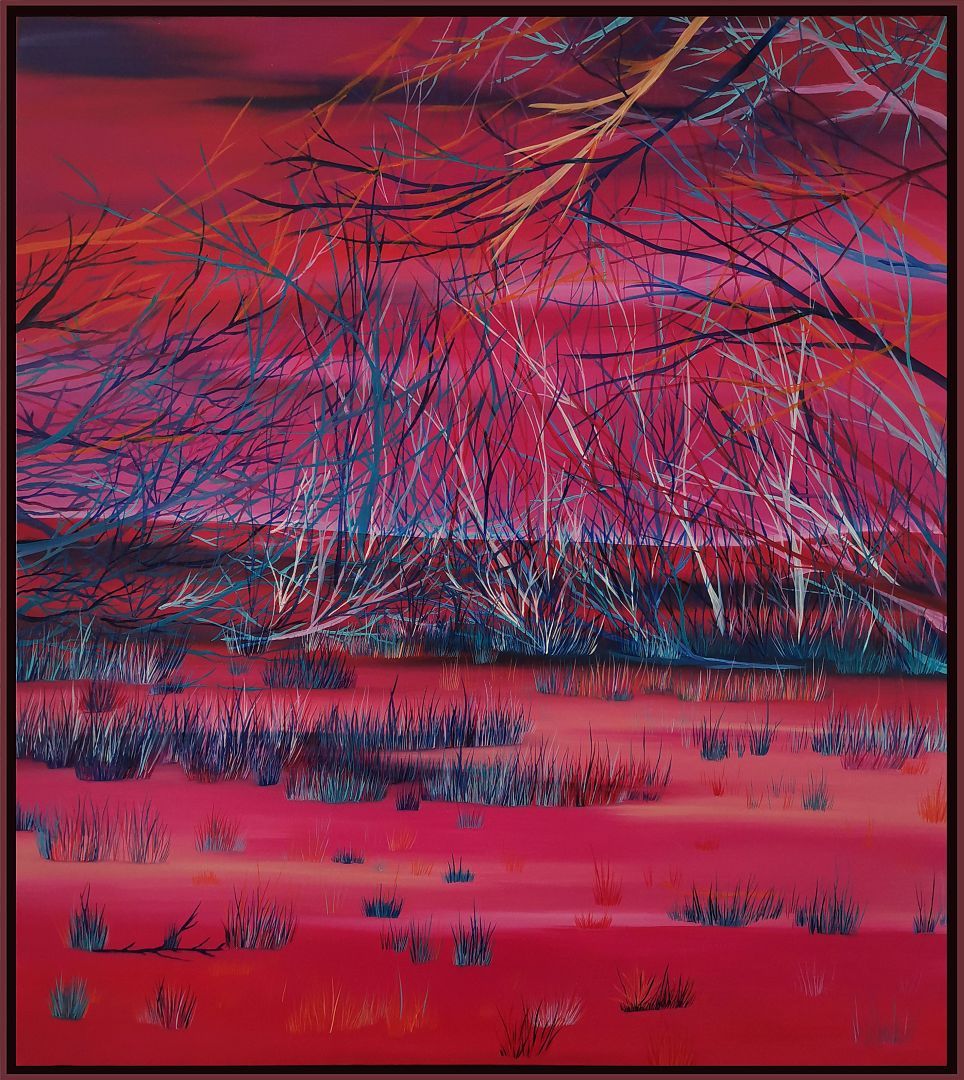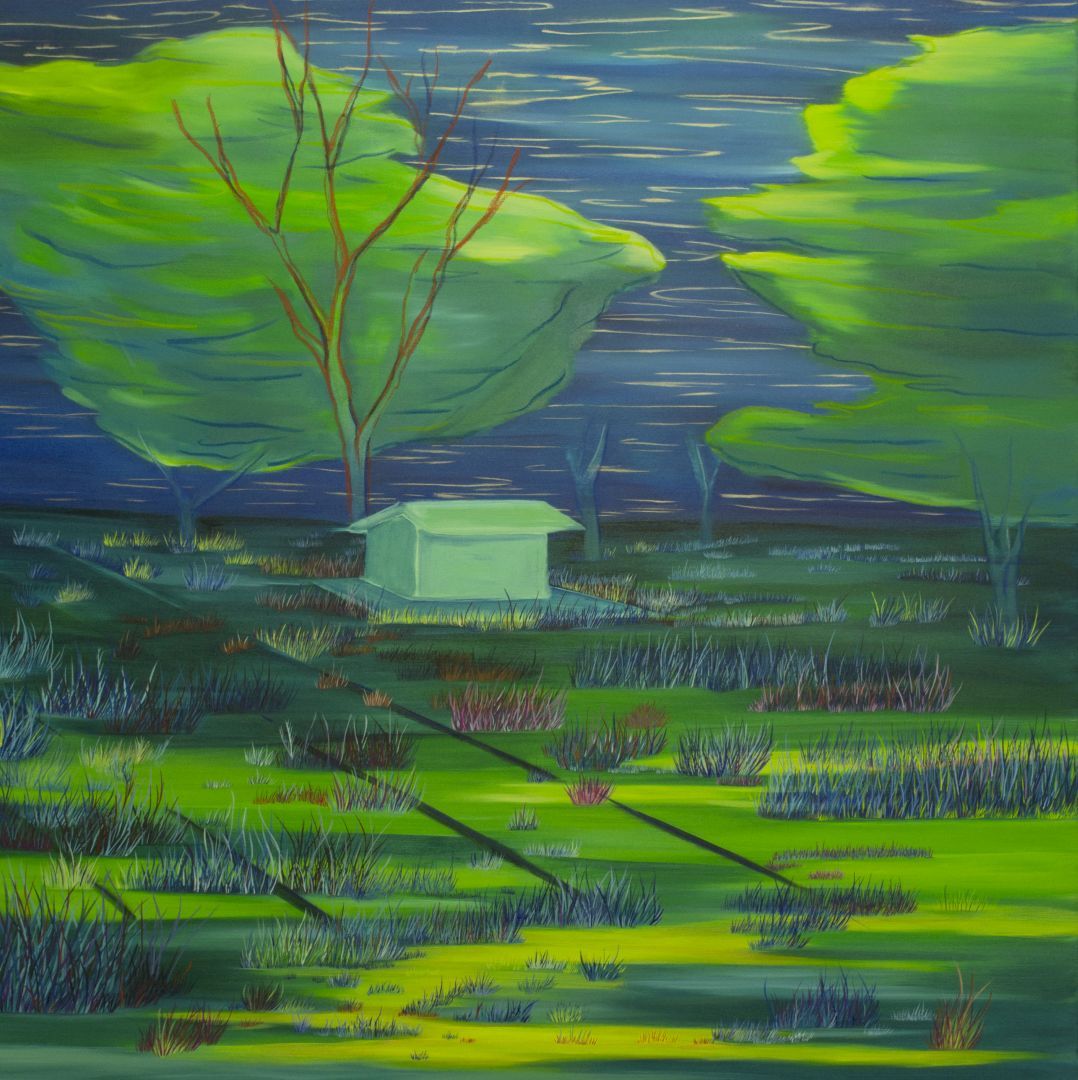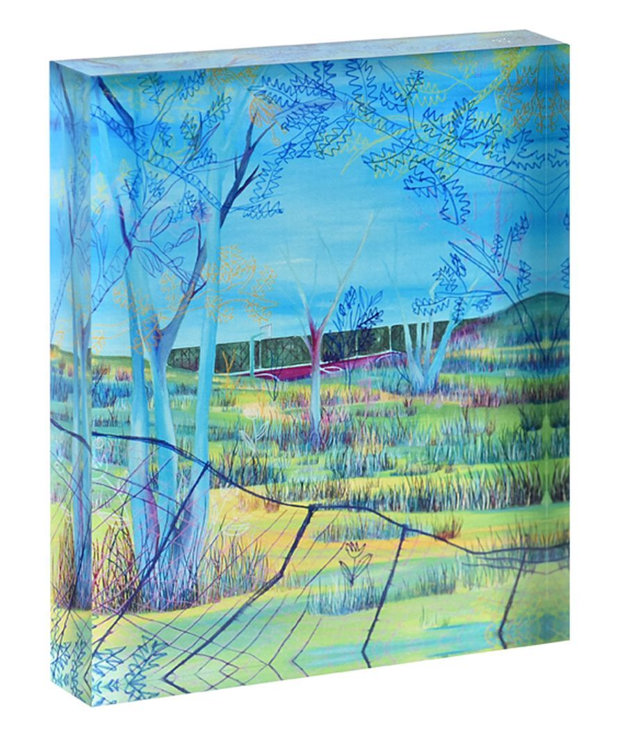 Το έργο της Εύης Ζαμπέλη αποτελείται από ζωγραφικά έργα σε καμβά και ακουαρέλες σε χαρτί. Στη συγκεκριμένη σειρά έργων που παρουσιάζει, πρωταγωνιστούν τα τοπία. Τοπία τα οποία βρίσκονται σε μέρη που έχει ταξιδέψει ή έχει ζήσει, εκτός κάποιου αστικού κέντρου. Τα συγκεκριμένα μέρη τα φωτογραφίζει και τα μεταφέρει στον καμβά με έντονα χρώματα και τη δική της προσωπική γραφή. Έτσι ο θεατής καλείται να ταξιδέψει σε ένα φανταστικό αλλά και γνώριμο μέρος. Αυτό που κάνει το έργο της Εύης ξεχωριστό είναι τα έντονα καθαρά χρώματα και οι υφές για τα οποία αντλεί ιδέες από μοτίβα που βρίσκονται σε υφάσματα και φυτά.