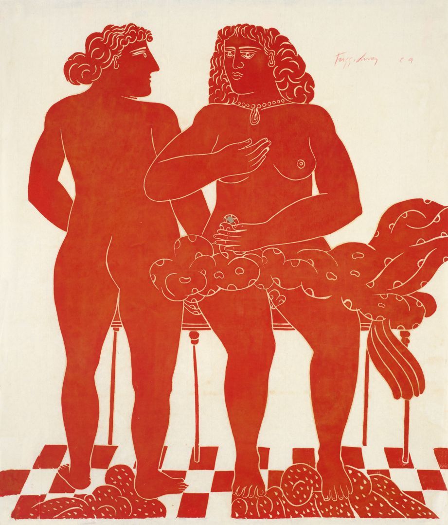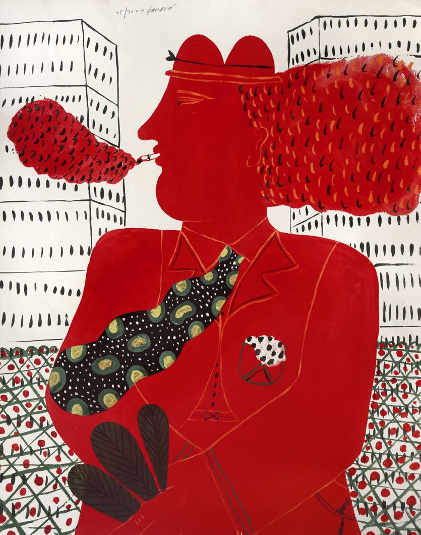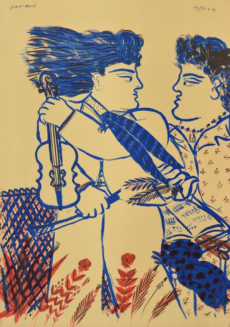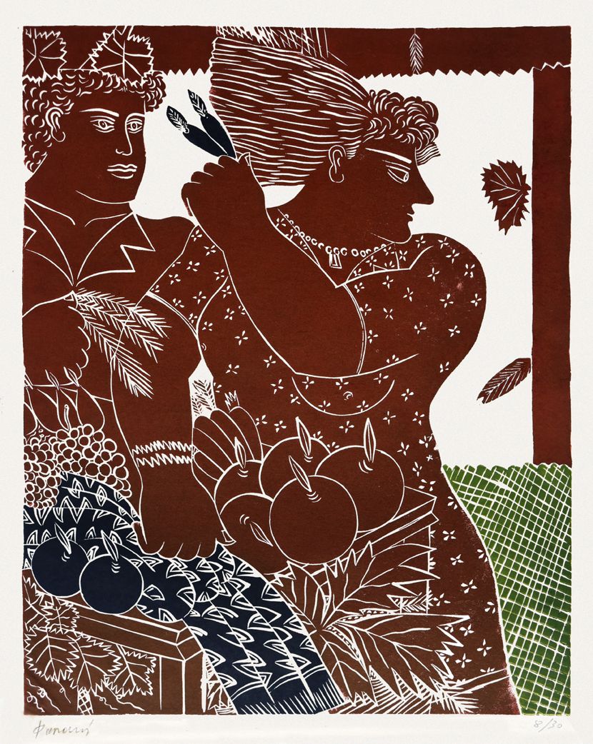 Στα θέματά του κυριαρχεί η ανθρώπινη φιγούρα, η οποία αποδίδεται αρχικά με μια ηθελημένη απλοϊκότητα, αλλά με τον καιρό εξελίσσεται και αποκτά μια κυρίαρχη παρουσία στο χώρο. Σχεδιάζεται σχηματοποιημένα, με λιτά και καθαρά περιγράμματα, σε συνθέσεις επίπεδες με ελάχιστη φωτοσκίαση. Συχνά το χρώμα απλώνεται έντονο και εννιαίο σε όλη την επιφάνεια της μορφής, δίνοντας μια εντυπωσιακή μνημειακότητα στην εικόνα, η οποία λειτουργεί κυρίως ποιητικά και όχι ρεαλιστικά.