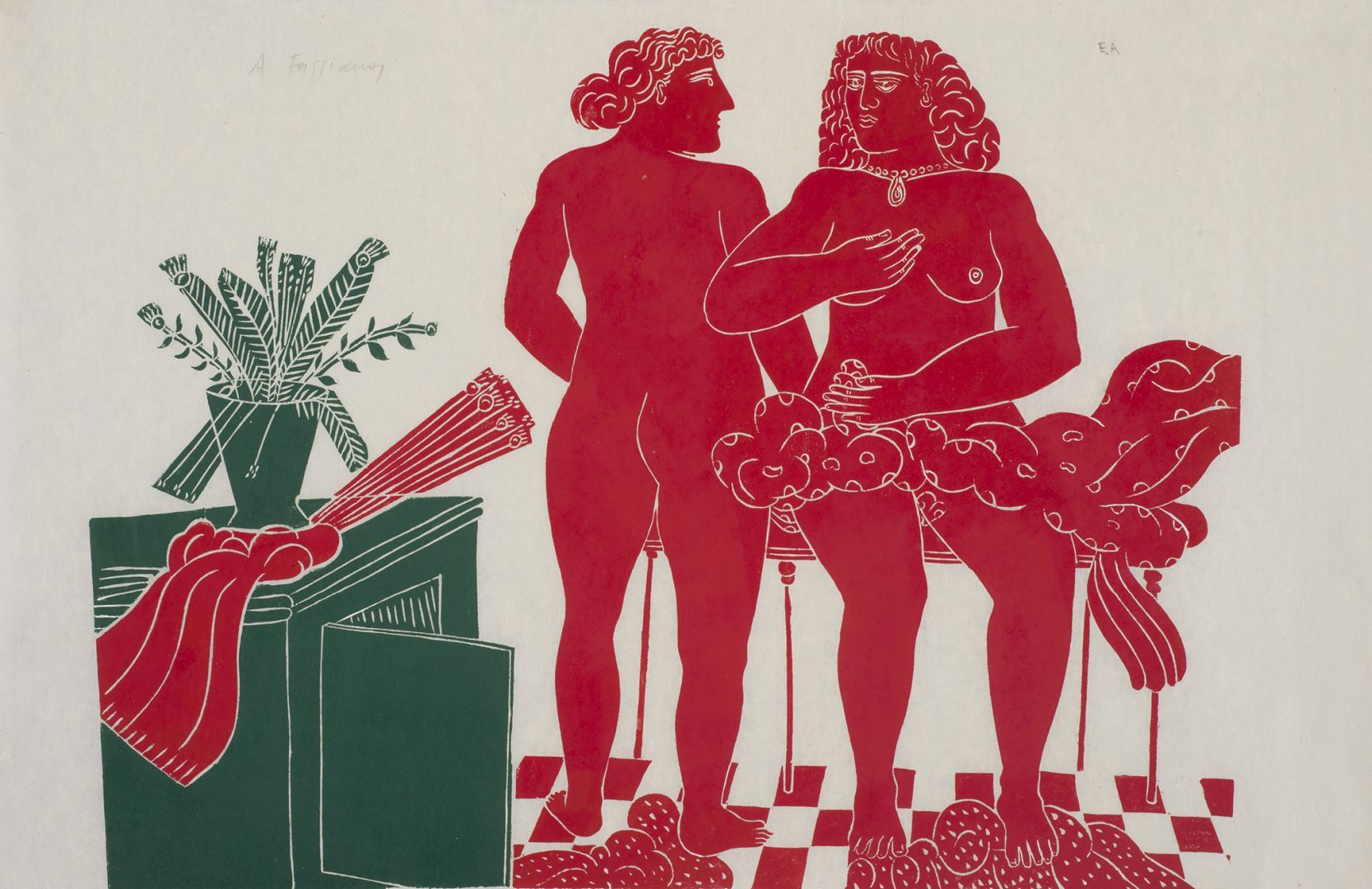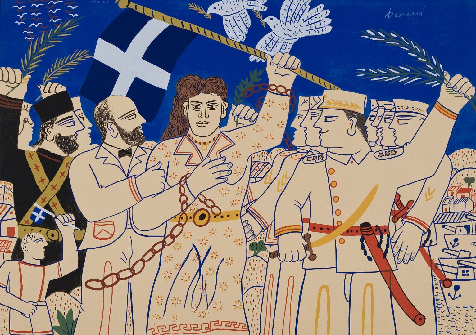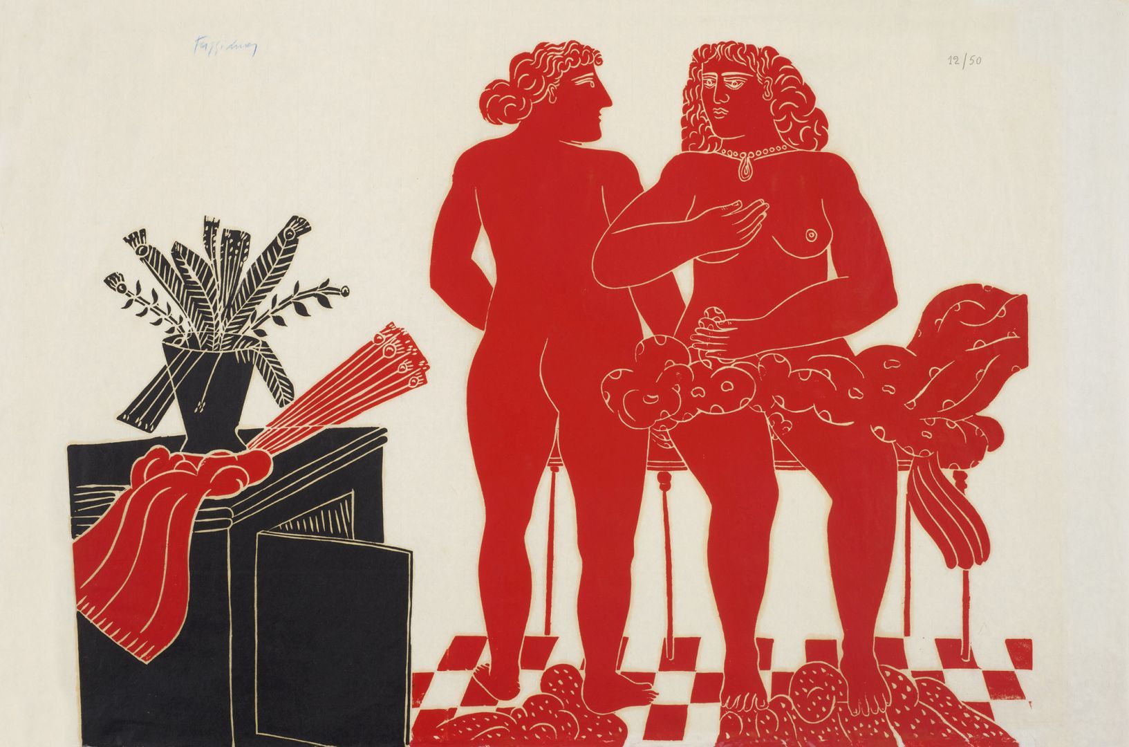 Στα θέματά του κυριαρχεί η ανθρώπινη φιγούρα, η οποία αποδίδεται αρχικά με μια ηθελημένη απλοϊκότητα, αλλά με τον καιρό εξελίσσεται και αποκτά μια κυρίαρχη παρουσία στο χώρο. Σχεδιάζεται σχηματοποιημένα, με λιτά και καθαρά περιγράμματα, σε συνθέσεις επίπεδες με ελάχιστη φωτοσκίαση. Συχνά το χρώμα απλώνεται έντονο και εννιαίο σε όλη την επιφάνεια της μορφής, δίνοντας μια εντυπωσιακή μνημειακότητα στην εικόνα, η οποία λειτουργεί κυρίως ποιητικά και όχι ρεαλιστικά.