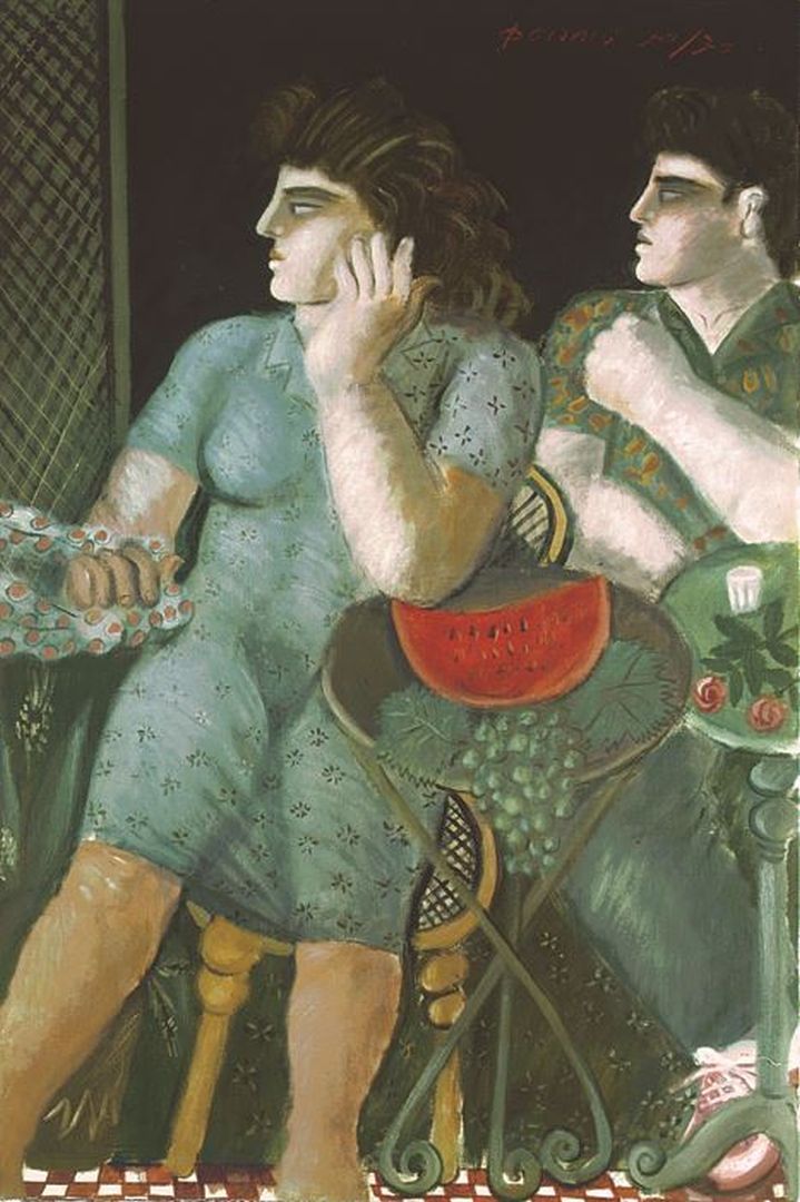 Τα μοτίβα που κατά καιρούς εμφανίζονται στη ζωγραφική του, τόσο τα καθαρώς ανθρωποκεντρικά (ποδηλάτες, καπνιστές, ερωτικά ζευγάρια, κ.ά) όσο και εκείνα που περιγράφουν αντικείμενα ή χώρους, προέρχονται καταρχήν από μια οικεία καθημερινότητα, η οποία όμως παίρνει μια μυθική διάσταση, ιδίως όταν υπάρχουν και άμεσες αναφορές σε πρόσωπα της ελληνικής μυθολογίας.
