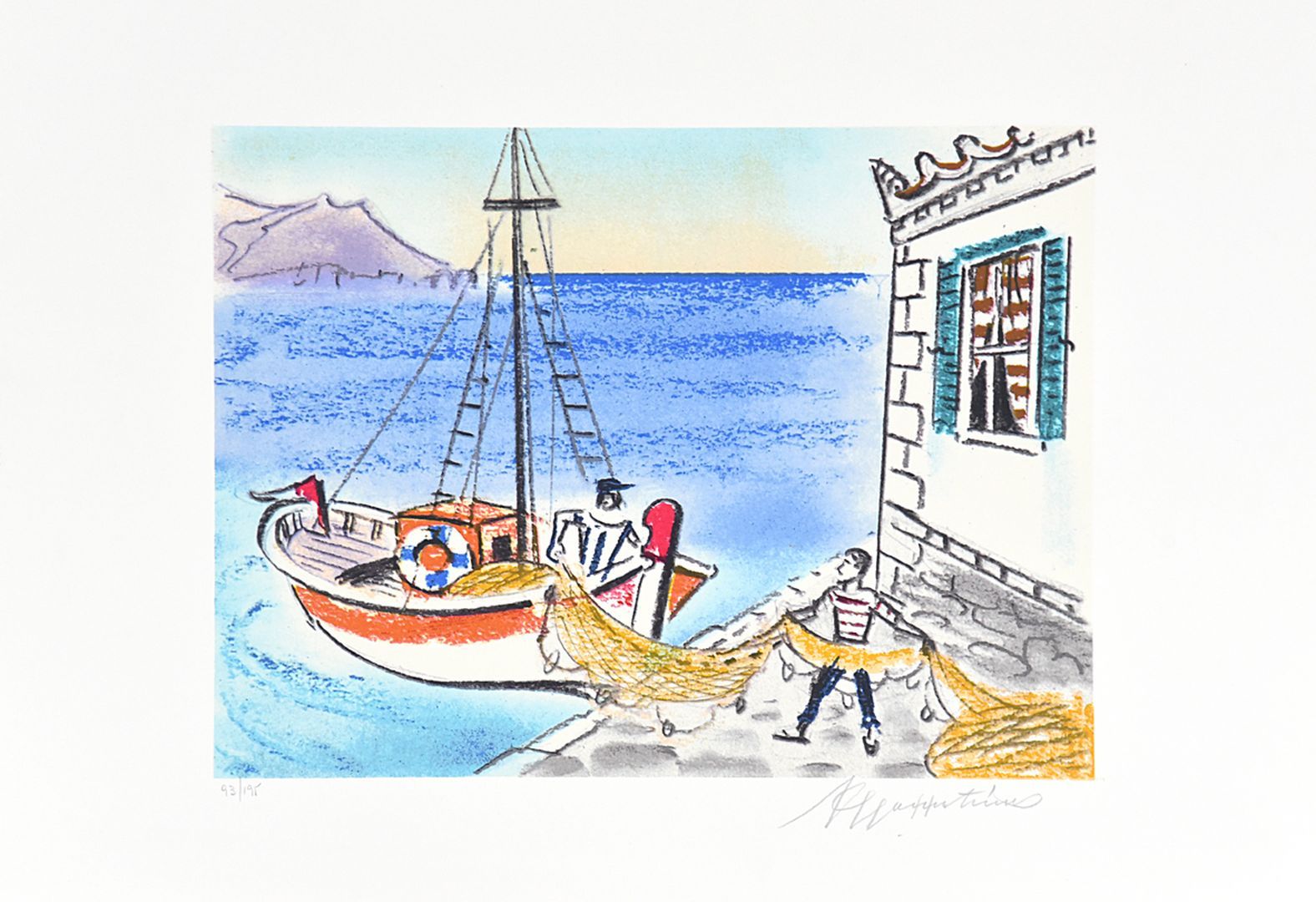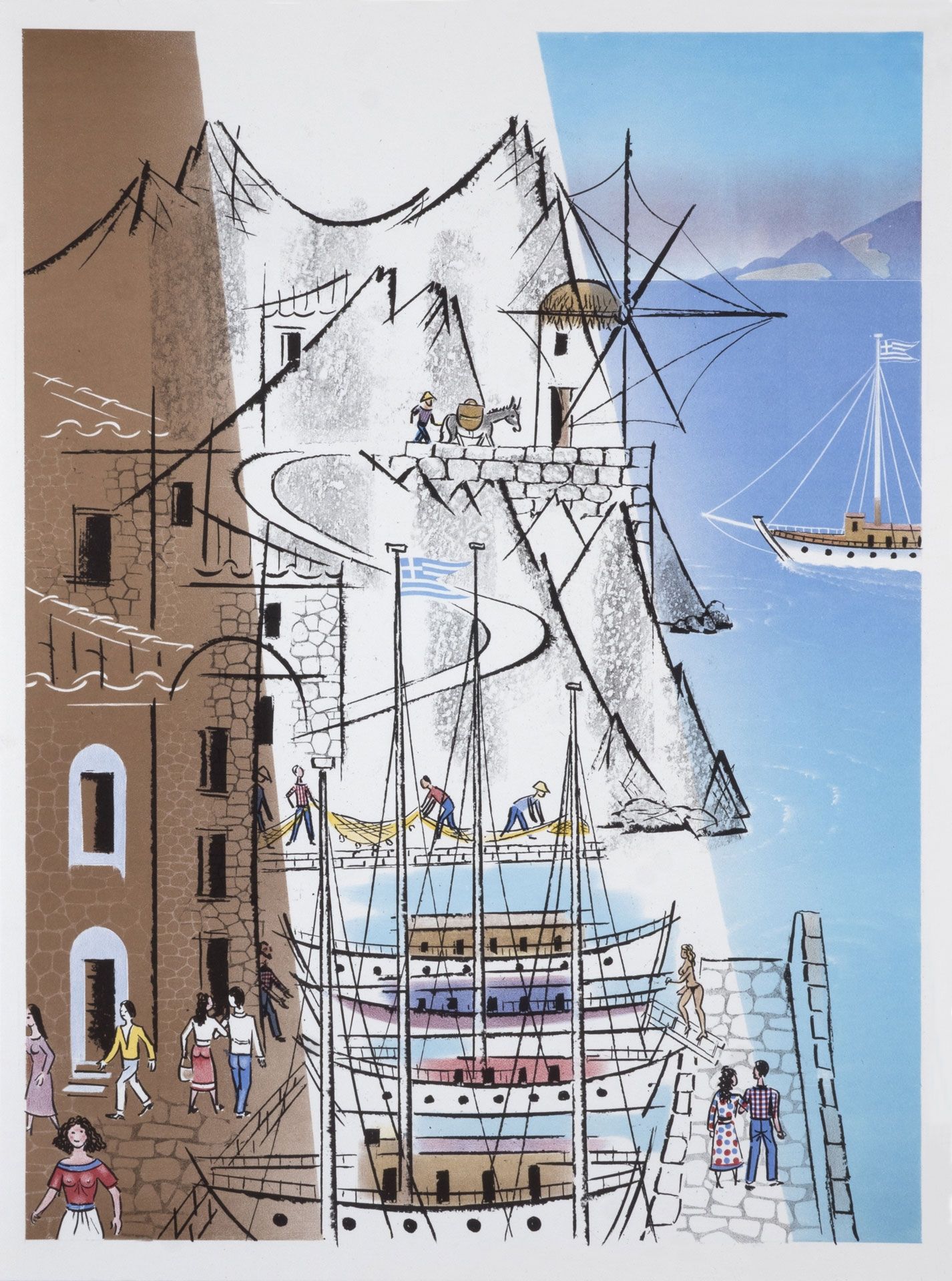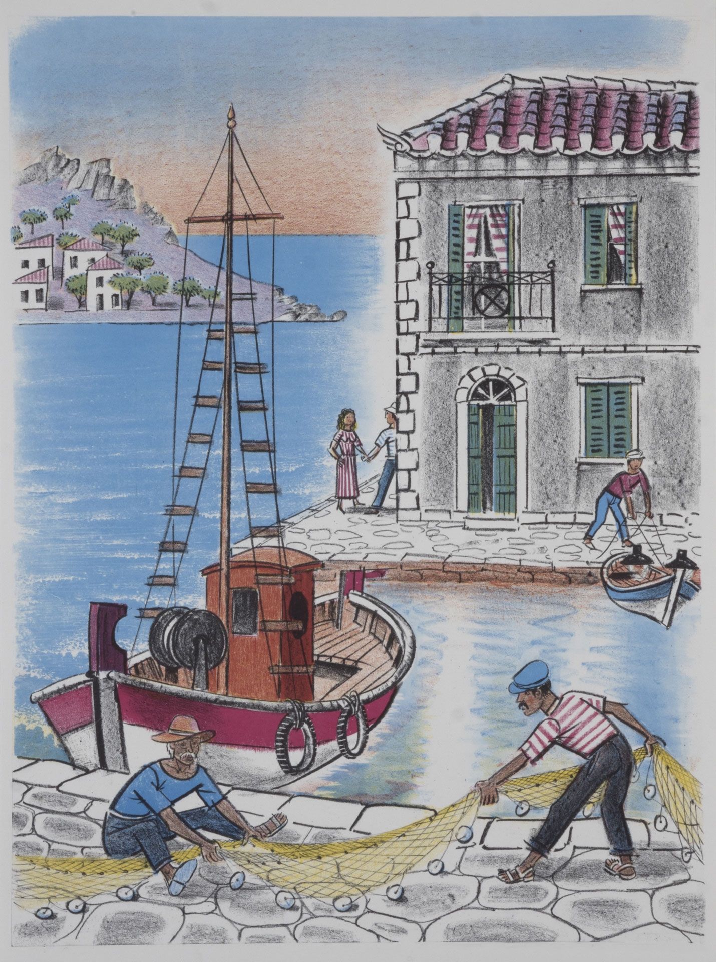 Το 1949 ανέλαβε, μετά από διαγωνισμό, την εικονογράφηση και λιθογραφική εκτέλεση του Αναγνωστικού της Α΄τάξης Δημοτικού Τα Καλά Παιδιά του ΟΕΣΒ, το οποίο κέρδισε το Α΄ Βραβείο στο Διεθνές Παιδαγωγικό Συμπόσιο και τη Διεθνή Έκθεση του Laeken στο Βέλγιο. Το 1955 εικονογράφησε και το επόμενο Αναγνωστικό, το Αλφαβητάριο που χρησιμοποιήθηκε για πάνω από είκοσι χρόνια. Το 1954 πήγε το Παρίσι με υποτροφία του Ι.Κ.Υ., και συνέχισε για τρία χρόνια τις σπουδές του στην ζωγραφική, χαρακτική και γραφικές τέχνες (?cole des Beaux-Arts, ?cole Estienne και ?cole Nationale Sup?rieure des M?tiers d’Art). Η παρισινή του εμπειρία επηρέασε καθοριστικά το εικαστικό του έργο. Η θεματολογία του παρέμεινε ελληνοκεντρική, αλλά το στιλ του πλουτίστηκε με στοιχεία της μοντέρνας τέχνης.