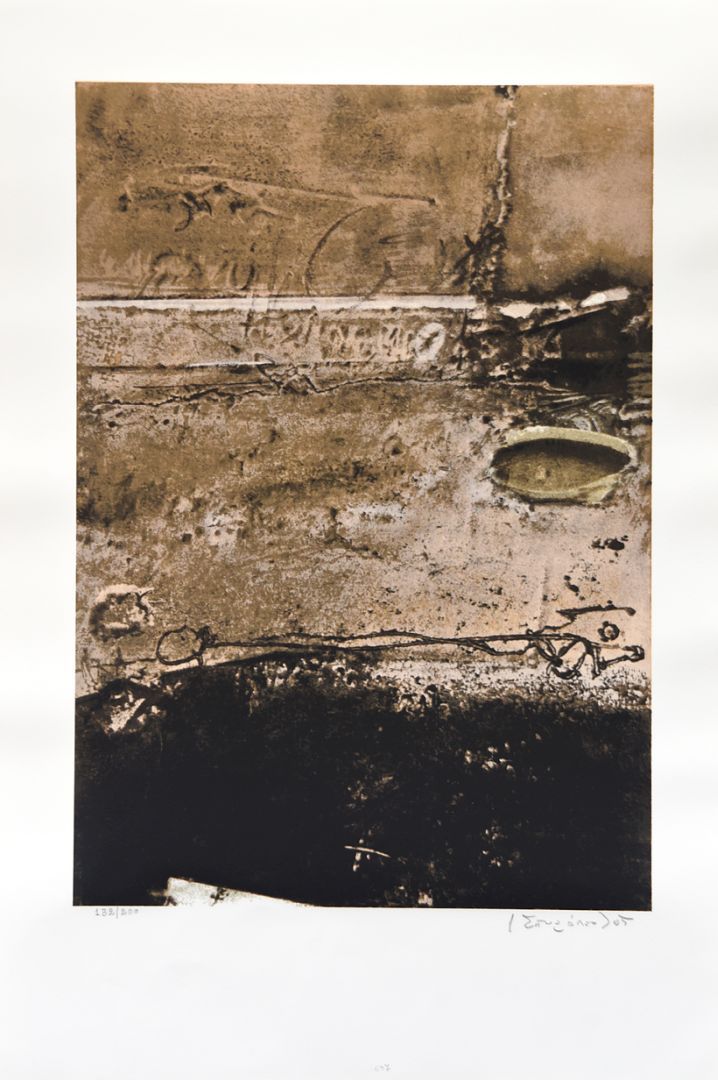 Αρχικά η ζωγραφική του ήταν παραστατική, με εμφανείς επιρροές από την μαθητεία του στην ΑΣΚΤ και στο Παρίσι. Γύρω στο 1954 η γραφή του άρχισε να απομακρύνεται από τη συμβατική αναπαράσταση και οδηγήθηκε βαθμιαία προς την αφαίρεση. Στα έργα του αξιοποιεί την εκφραστική δύναμη της ματιέρας, με επικολλήσεις υλικών που εσωματώνονται στην επιφάνεια του πίνακα. Οι χειρονομιακές επεμβάσεις (χαράγματα, σκισίματα, κηλίδες, γραφισμοί…) και η υποβλητική χρήση του χρώματος δημιουργούν μια προσωπική γραφή με έντονα δραματικό χαρακτήρα.