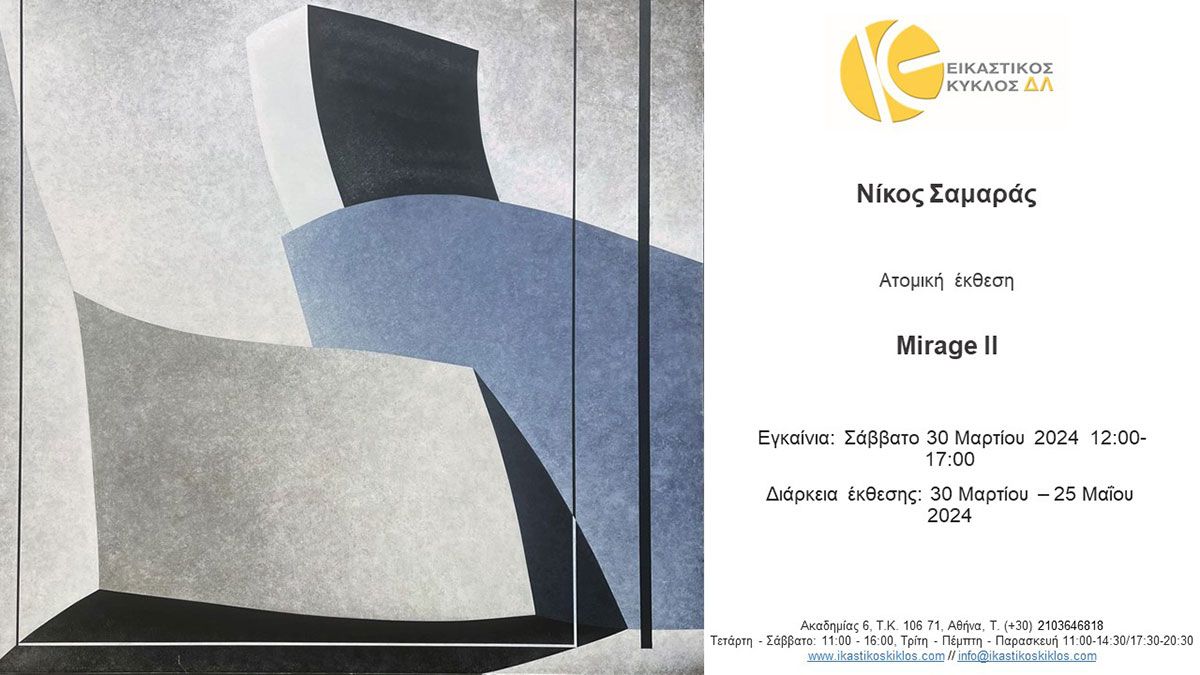 Ο Εικαστικός Κύκλος ΔΛ σε συνεργασία με την ΔΛ Gallery παρουσιάζει το Σάββατο 30 Μαρτίου 2024 την ατομική έκθεση του Νίκου Σαμαρά με τίτλο «Mirage II».