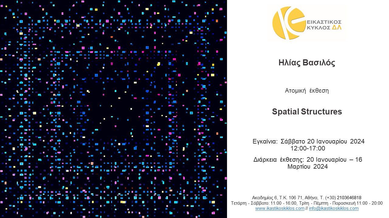 Ο Εικαστικός Κύκλος ΔΛ παρουσιάζει το Σάββατο 20 Ιανουαρίου 2024 την ατομική έκθεση του Ηλία Βασιλού με τίτλο «Spatial Structures».