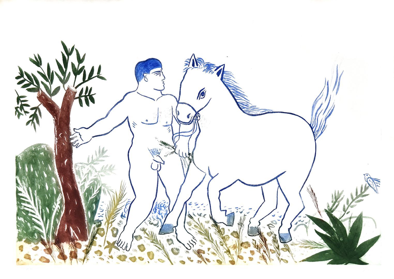 He was born in Athens in 1935. He studied violin at the Athens Conservatoire and painting at the Athens School of Fine Arts under Yiannis Moralis (1955-1960). Shortly after his first solo show in Athens (A23 Gallery, 1960), he went to Paris on a French state scholarship. He studied lithography at the Ecole des Beaux-Arts, under Clairin and Dayez (1962-1964). He finally settled in the French capital, where he lived for 35 years, keeping, however, an equally close relationship with Greece. The particular features of his art were gradually developed during his stay in Paris, where he had the opportunity to familiarize with the modern artistic trends of the 1960’s, among other things. However, unlike other Greek artists of his generation, he did not clearly embrace any of the European avant-garde movements of the time. He remained faithful to figurative painting and his Greek heritage, maintaining all along his respect for the lessons of the ‘30s generation, his love for Greek art (ancient, byzantine, folk) and his strong ties with the true Greek environment experience. The human figure is his main subject, which is at first rendered with a deliberate simplicity, but with time, it progresses and becomes a dominant presence in space; his drawing style is schematized with clean-cut, clear outlines, and his compositions are flat with minimal shading. The colour is often spread intensely and evenly across the surface of the form, attributing in the image an impressive monumentality, with a poetic rather than a realistic effect. The patterns occasionally appearing in his paintings, both the purely anthropocentric ones (cyclists, smokers, romantic couples, et al.) and those describing objects or spaces, spring from a familiar everyday life, which, however, acquires a mythical dimension, especially when there are direct references to figures from the Greek mythology. He has illustrated books of well-known poets and writers in Greece and France (Elytis Tachtsis, Cavafy, Aragon, Apollinaire, et al.). He has also designed posters and stamps. He worked as a stage and costume designer with the National Theatre of Greece, the Karolos Kuhn Art Theatre (Theatro Technis), and other troupes, in performances of ancient Greek drama and modern plays as well. He has also published his own prose and poetry. In 2000 he created artworks for the ‘Metaxourgio’ metro station in Athens. Four films on his oeuvre have been released (Greek and French productions), and several monographs have been published. In 1999 he was awarded by the Athens Academy, and in 2010 and he was honored with the Legion d’Honneur medal (Officier des Lettres et des Arts) by the French government. He presented his work in more than 70 solo exhibitions in Greece and in many European cities. His last retrospective exhibition Fassianos: Mythologies of Everyday Life was held at the Athens National Art Gallery in 2004. He participated in several group exhibitions and international art events in Greece and other parts of the world (Sao Paulo Biennale, 1971; Venice Biennale, 1972; Europalia, Brussels 1982; Biennial of European Graphic Art, Baden-Baden 1985, et al.).
