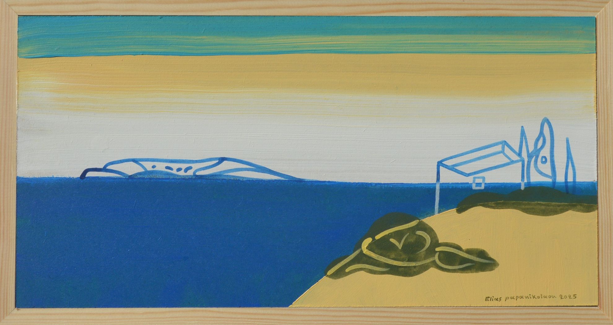 Μικτή τεχνική σε ξύλο με κορνίζα