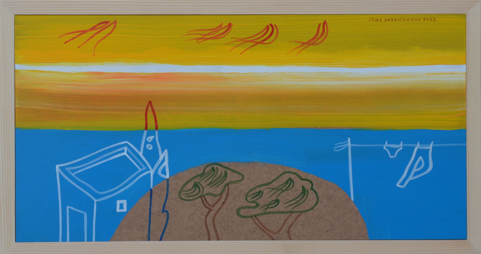Μικτή τεχνική σε ξύλο με κορνίζα