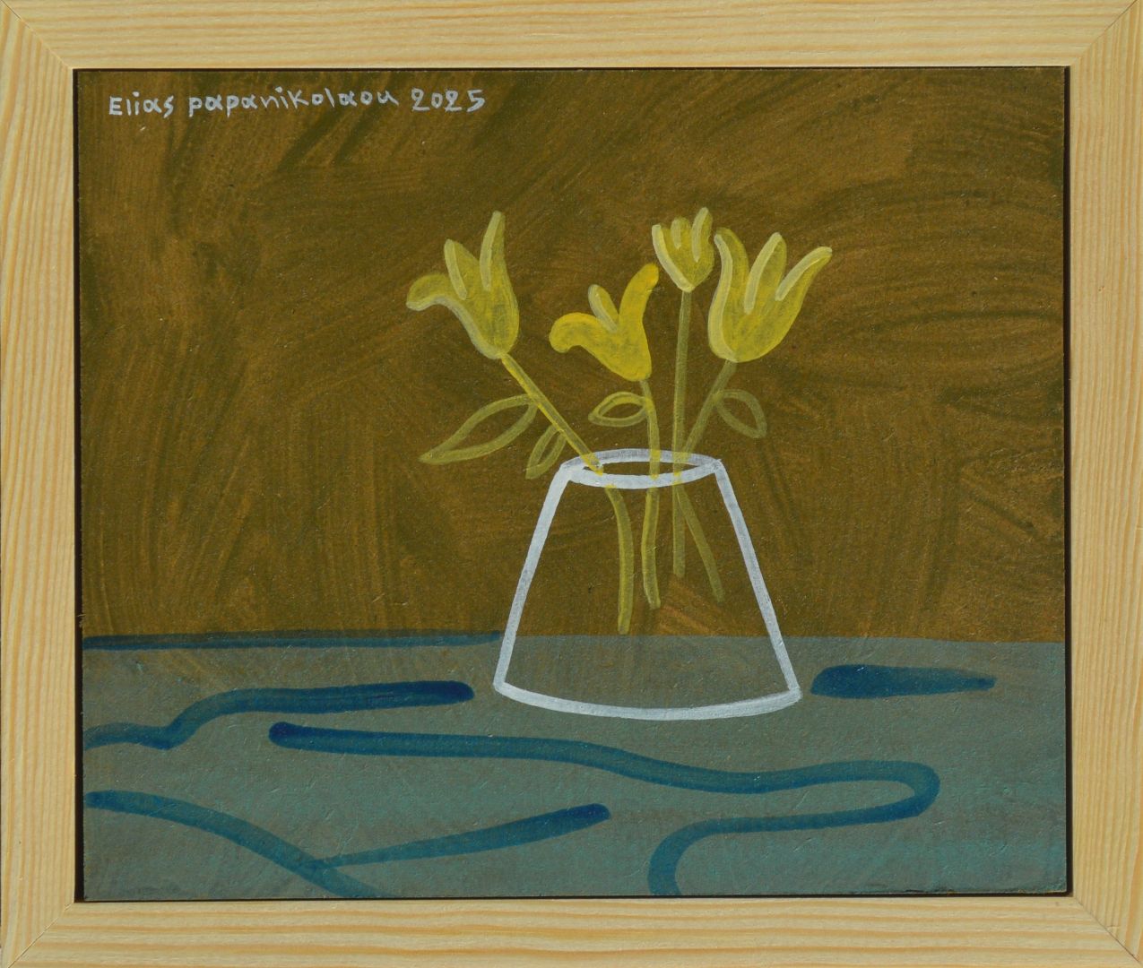 Μικτή τεχνική σε ξύλο με κορνίζα