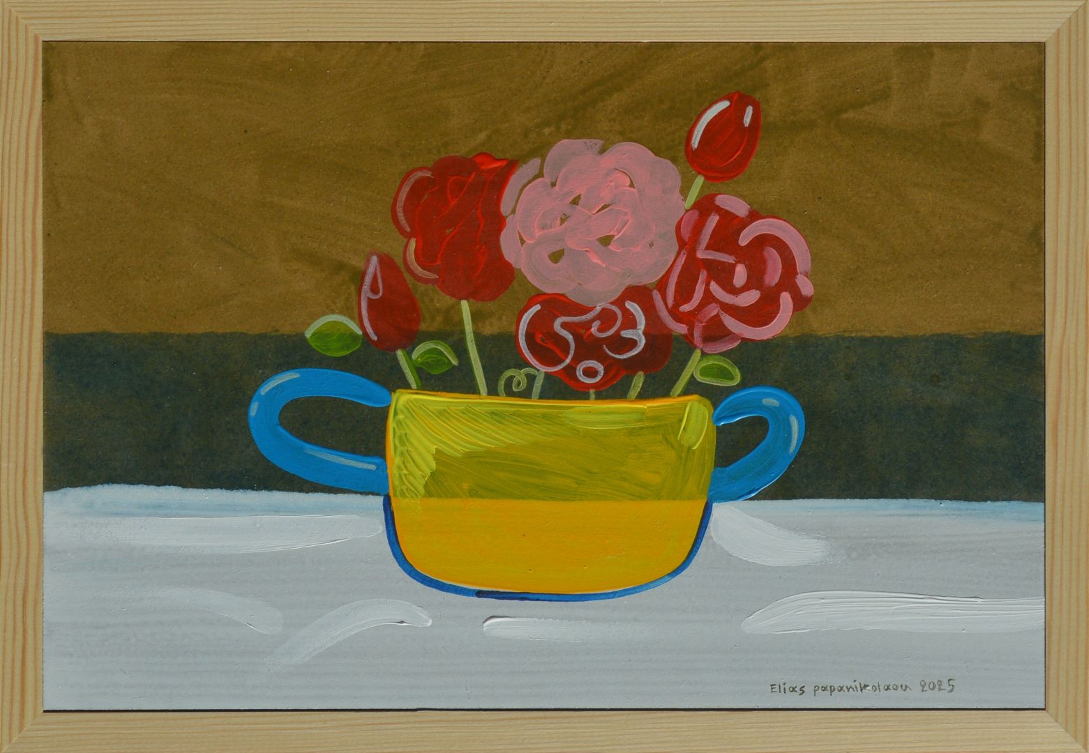 Μικτή τεχνική σε ξύλο με κορνίζα