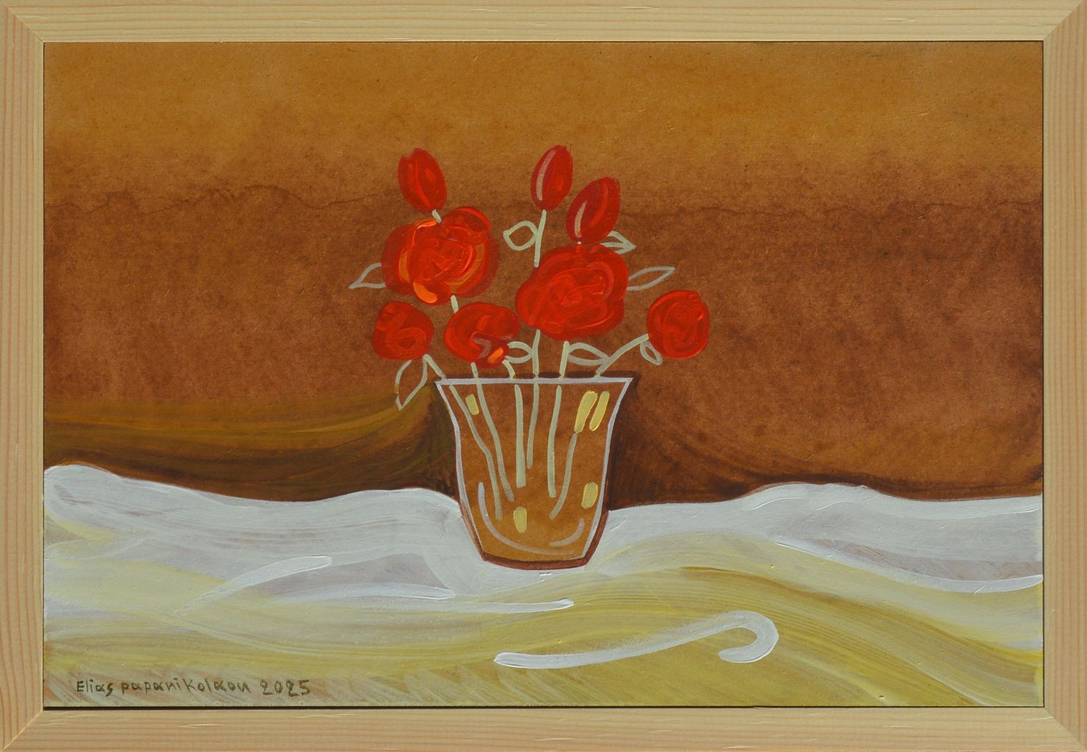 Μικτή τεχνική σε ξύλο με κορνίζα