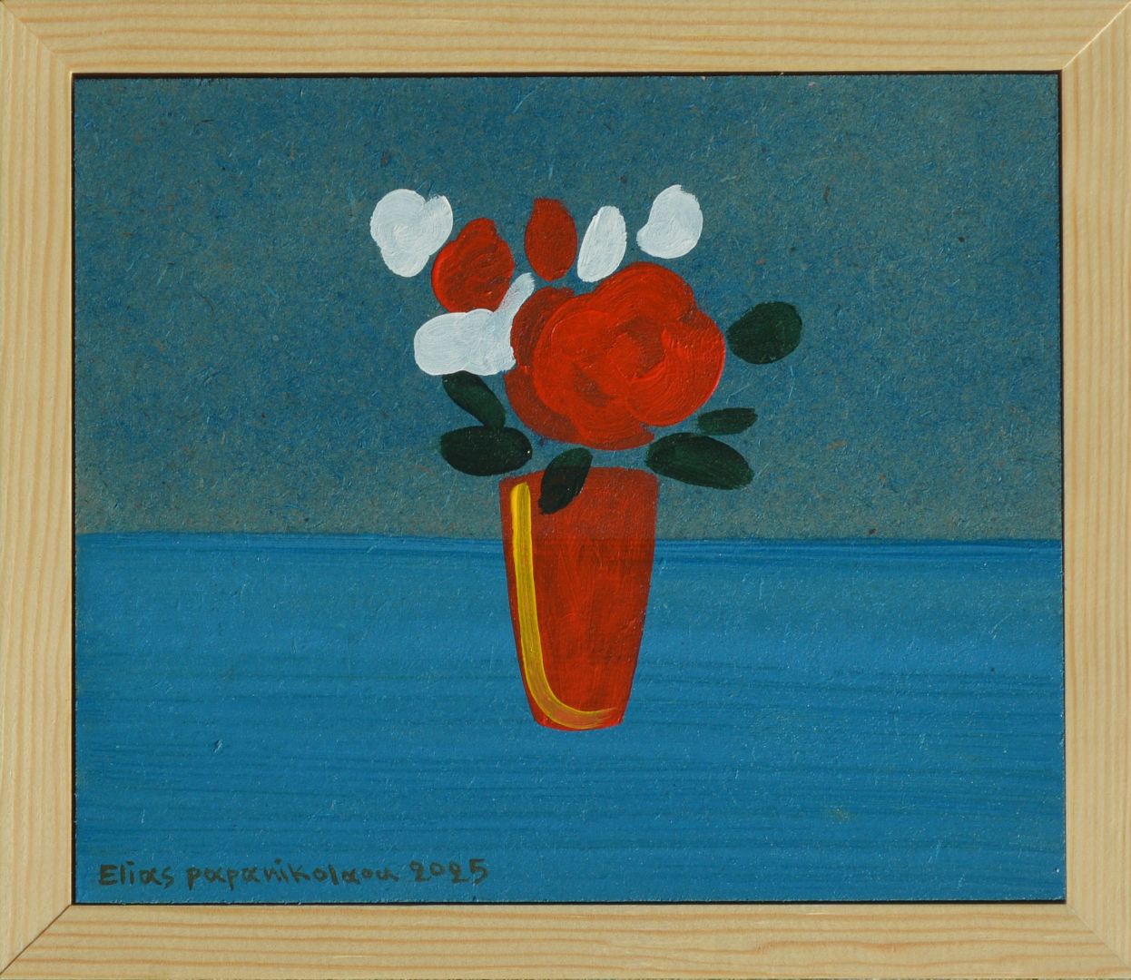 Μικτή τεχνική σε ξύλο με κορνίζα