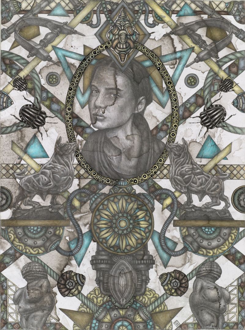 Χρωματιστά μολύβια, μολύβι και μελάνι σε χαρτί