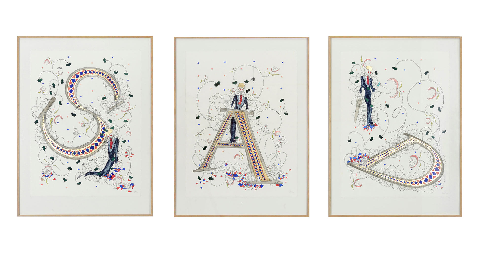Τρίπτυχο, ακουαρέλα, φύλλο χρυσού, μελάνι σε χαρτί