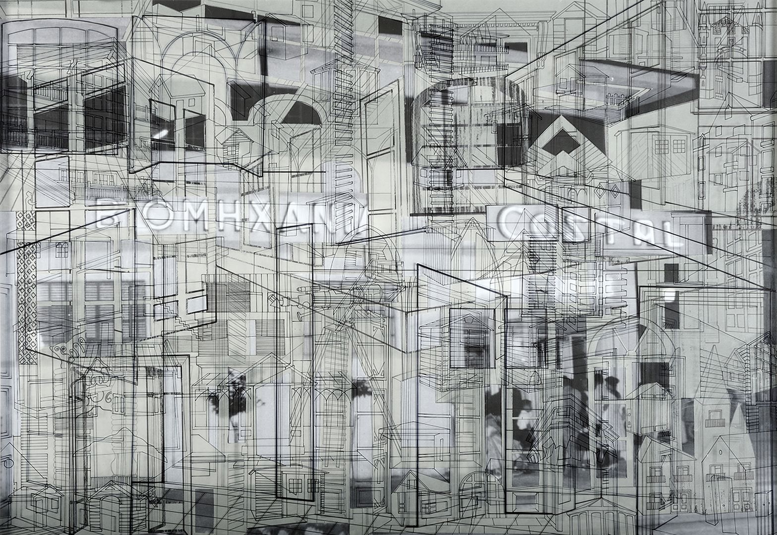 Υαλογράφος, γραφίτης σε ρυζόχαρτο και τζάμι