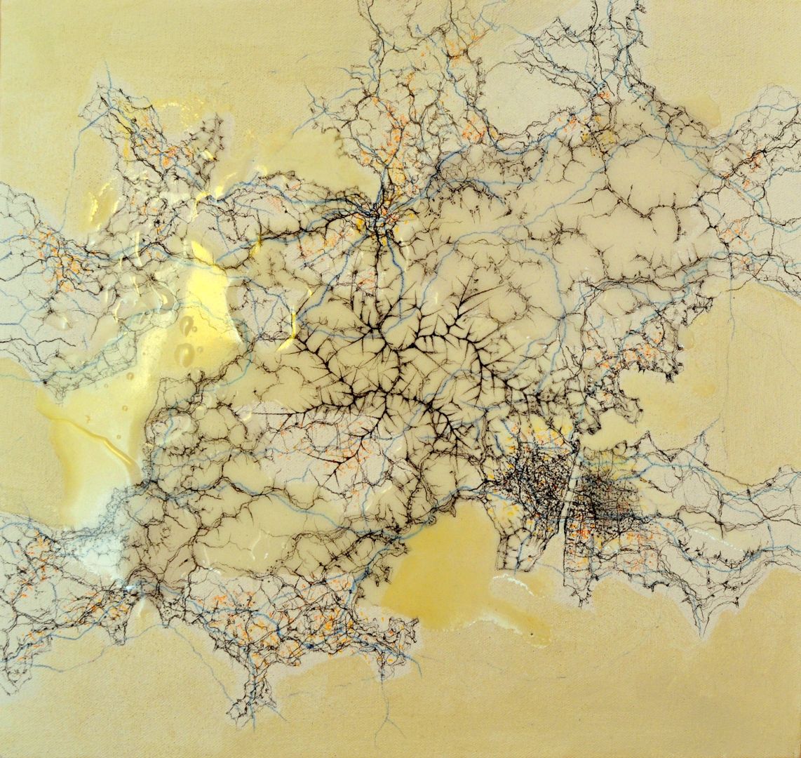 Μολύβια, λάδι και αλκαλική ρητίνη σε καμβά