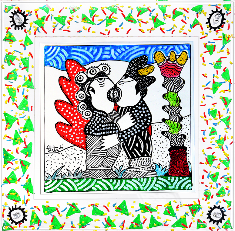 Aκρυλικό και μελάνι πάνω σε πορσελάνινο πλακάκι, επιζωγραφισμένο πλεξιγκλάς