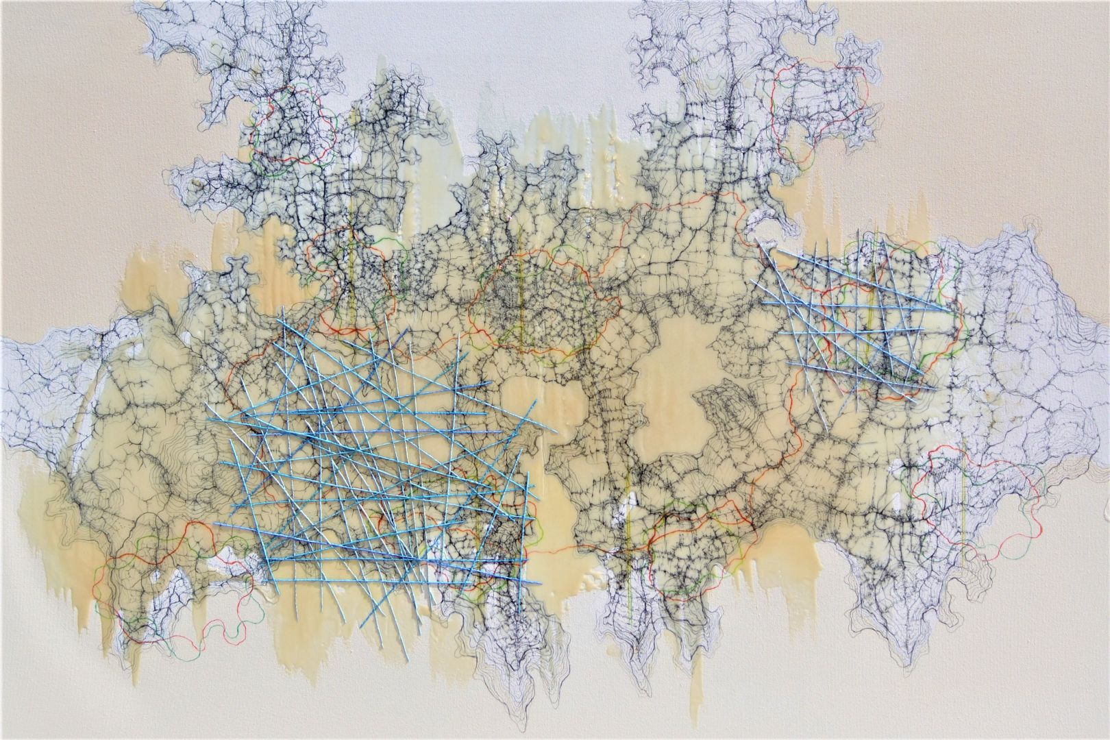 Μολύβια, ξυλομπογιές, λάδι, υγρό γυαλί σε μουσαμά