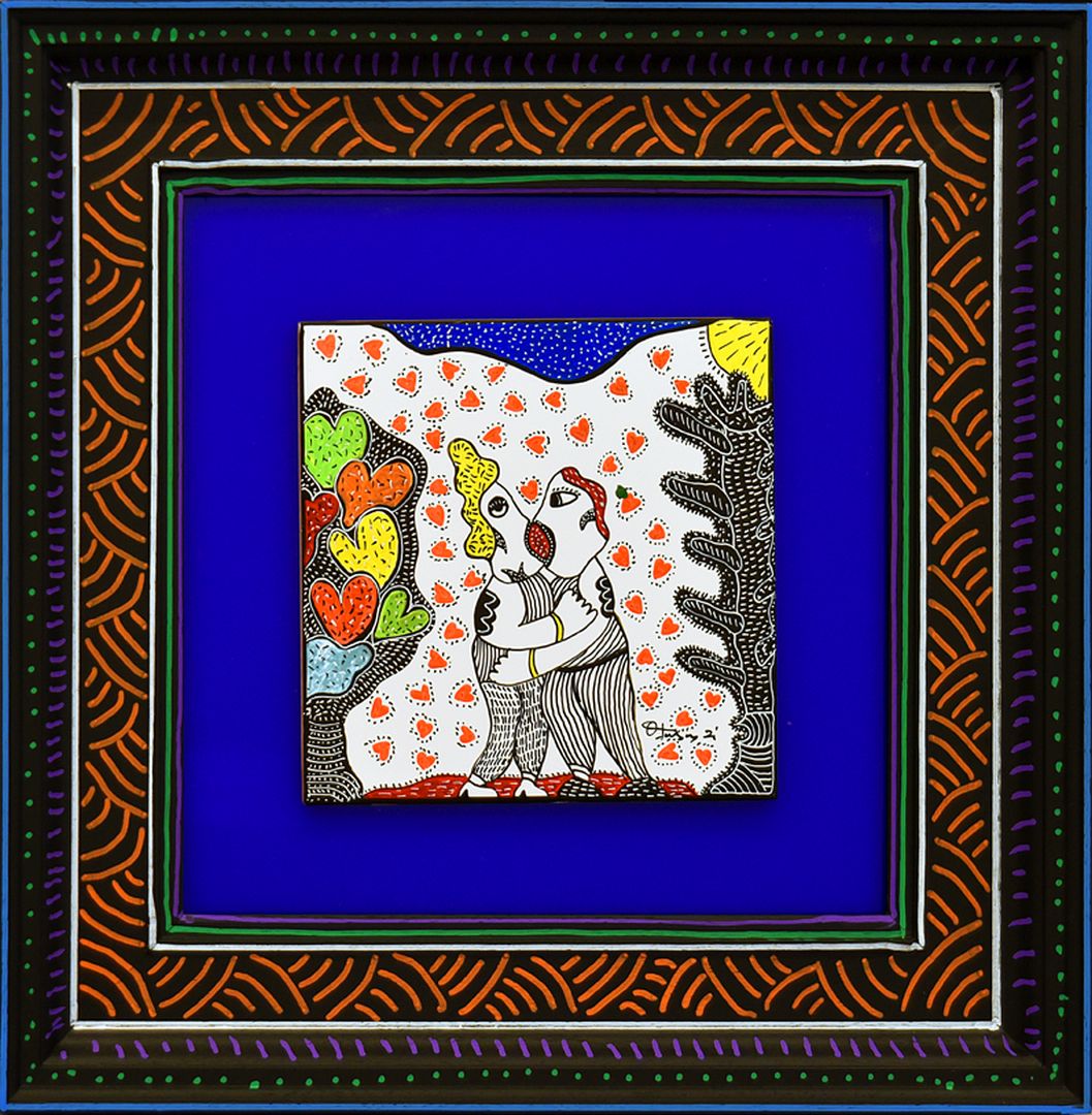 Aκρυλικό και μελάνι πάνω σε πορσελάνινο πλακάκι, επιζωγραφισμένη κορνίζα