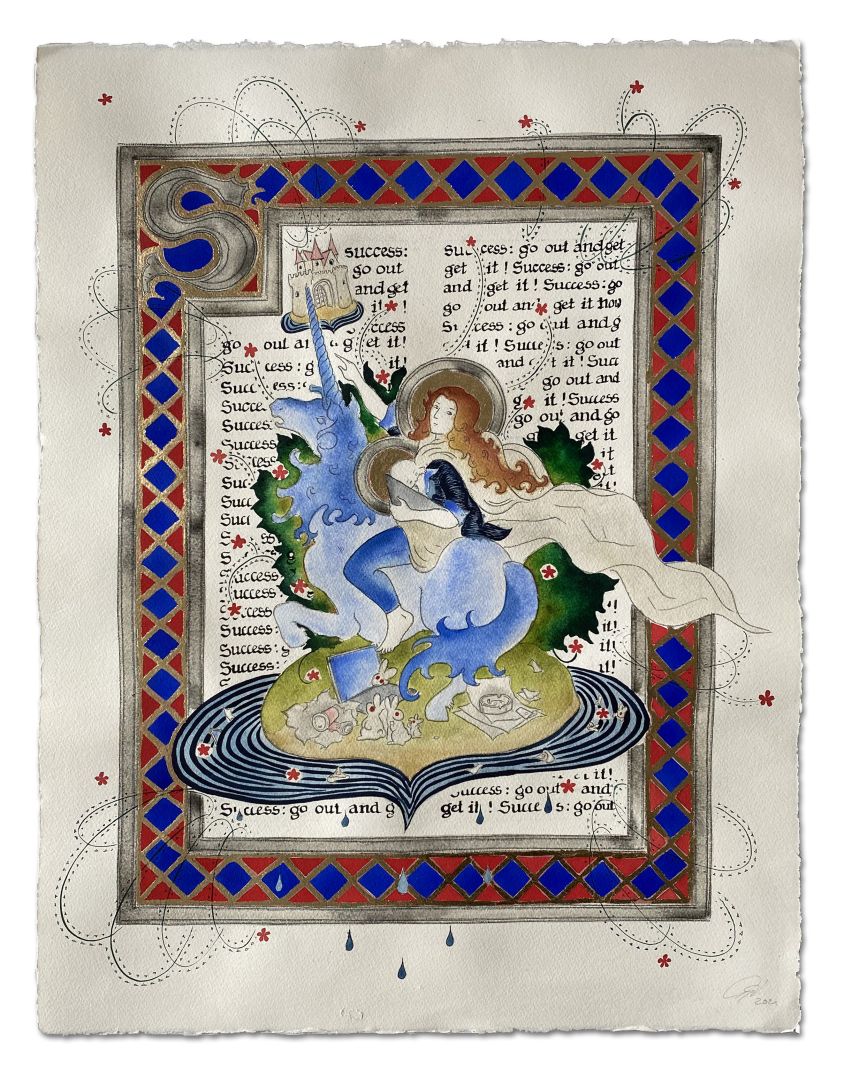 Ακουαρέλα, φύλλο χρυσού, μελάνι σε χαρτί με κορνίζα