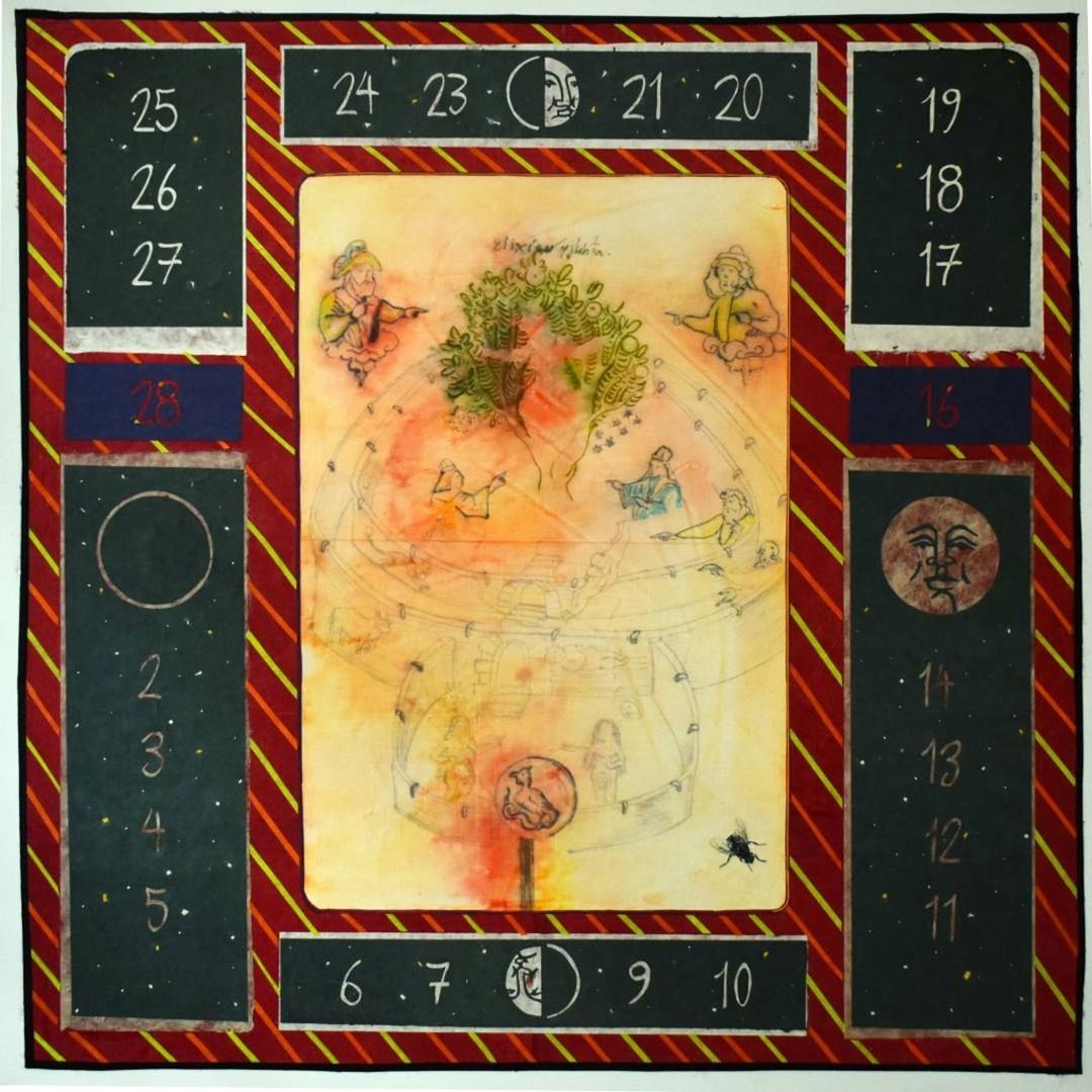 Μελάνι, ακουαρέλα και χαρτί σε καμβά